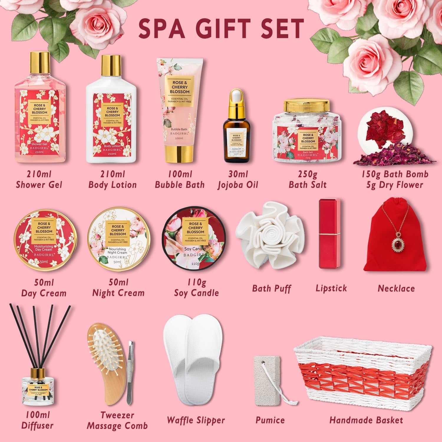 GIRRL 20Pcs Spa Gift Set for Women – Rose & Cherry Blossom Scent